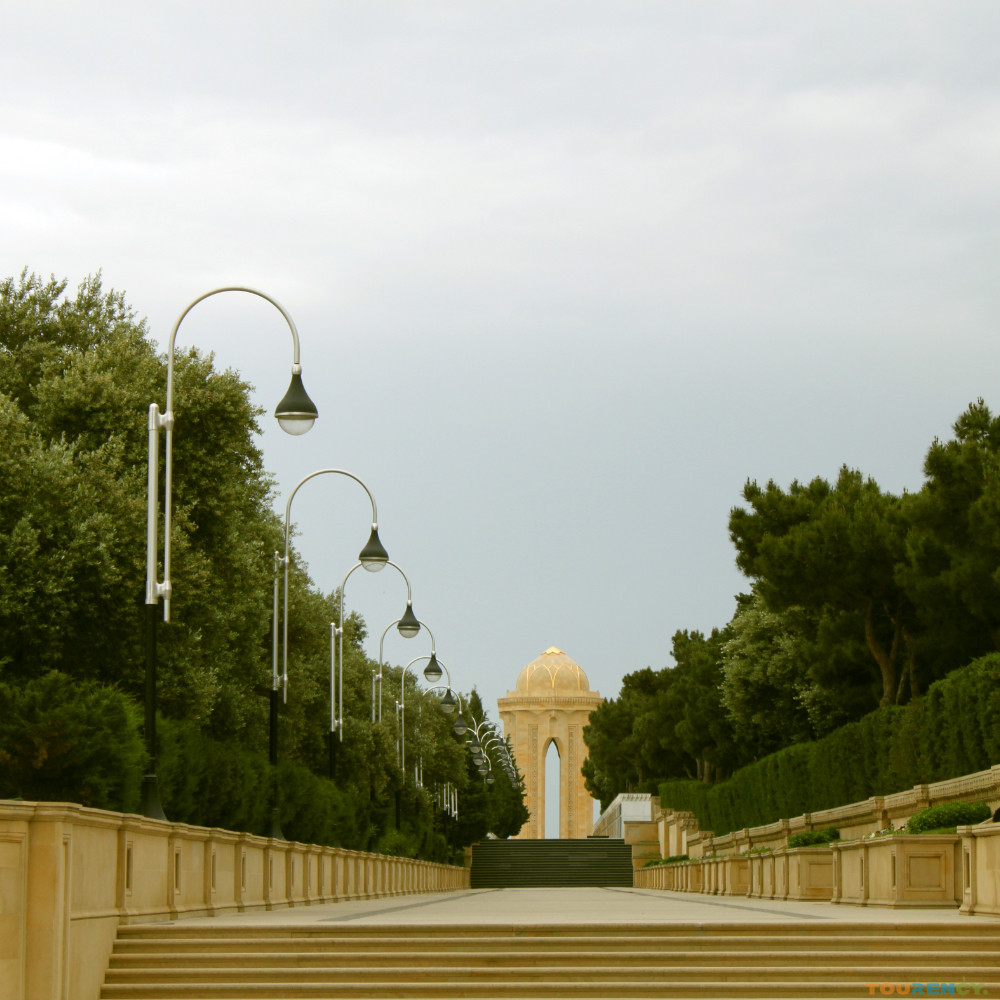 Honor National Heroes at the Solemn Alley of Martyrs. The Alley Of Martyrs In Baku Is A Solemn Memorial Honoring Azerbaijani Heroes Who Died In The Black January Massacre And The Nagorno-Karabakh Conflict. This Peaceful Park Features Tombstones And An Eternal Flame, Offering A Place For Reflection And Respect. Its Serene Atmosphere And Sweeping Views Of The City And The Caspian Sea Make It A Poignant Site Of Remembrance.